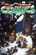 In this last issue of Gladstone's Walt Disney's Comics and Stories, "Duckman" Carl Barks and publisher Bruce Hamilton reflect back on their careers and the magical stories that brought joy to so many. In Carl Barks' "Donald Duck's Best Christmas," Donald and boys' plans to spend Christmas at Grandma's get dashed more than once, but end up on a heart-warming note! Donald and the nephews are on the hunt for a strange creature that is mystifying the residents of Duckburg in "Creature Comforts" by William Van Horn. Also included is Don Rosa's "War of the Wendigo" in which Scrooge is captured by mysterious little beings in the North woods because his Canadian pulp mill is polluting their home. (FINAL ISSUE OF SERIES)